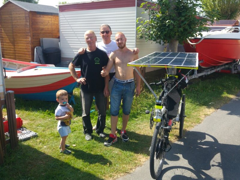 Le soir dans ce camping j’étais triste de ne pas pouvoir poursuivre notre tour comme nous avons planifié mais heureusement Stéphane m’a beaucoup aidé avec son optimisme et son calme: ensuite nous avons eu la grande chance de rencontrer des personnes vraiment exceptionnelles, JB et son père.