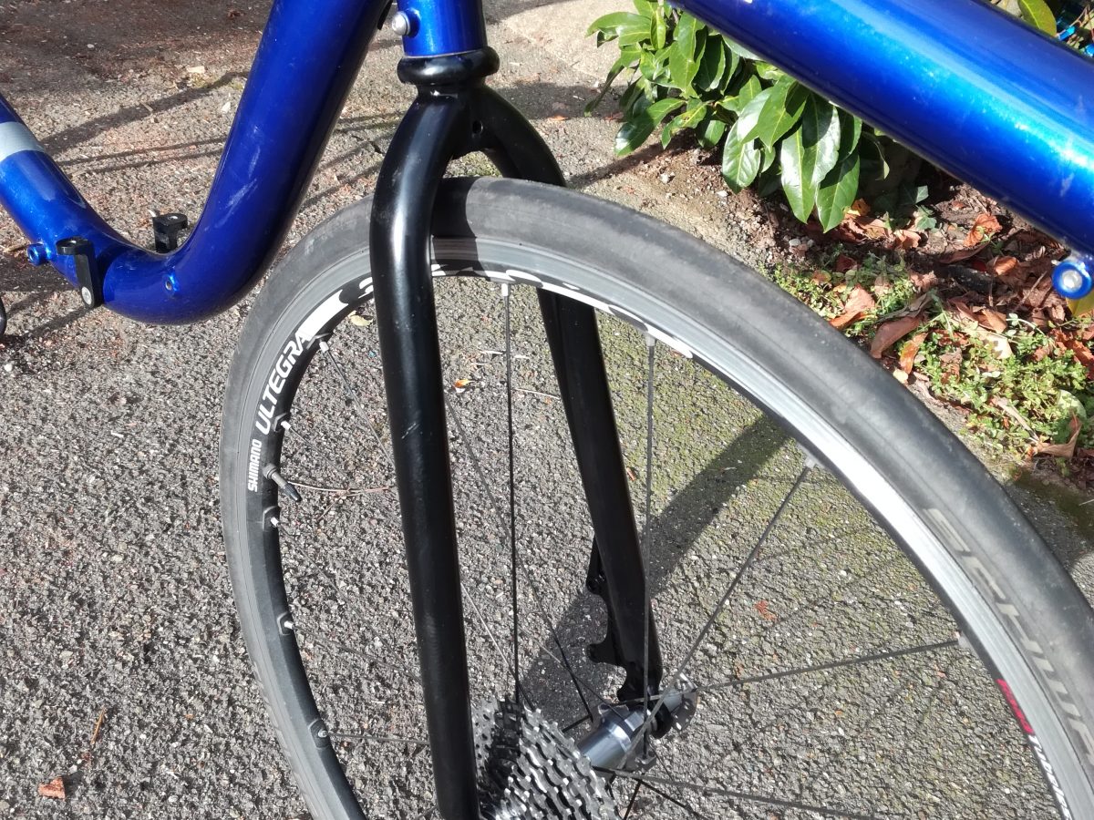 – Second picture: with the chain on the smallest sprocket there is practically no space with the fork: this happens only with the 11 teeth (seldom used…), so for the moment this is not going to be a real issue.