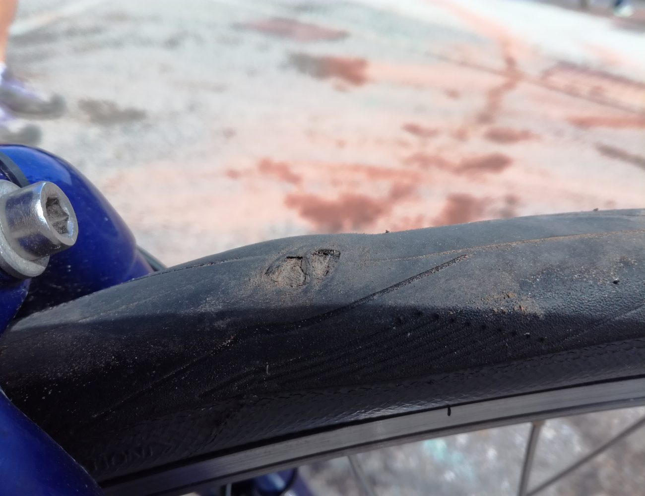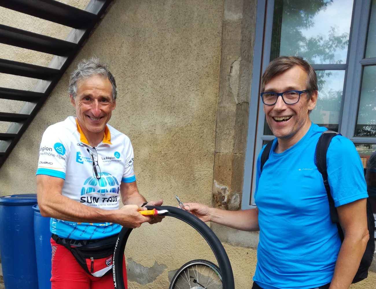 But with the help of Stéphane I was able to make a first fix (the new tire I bought was not the good size!)