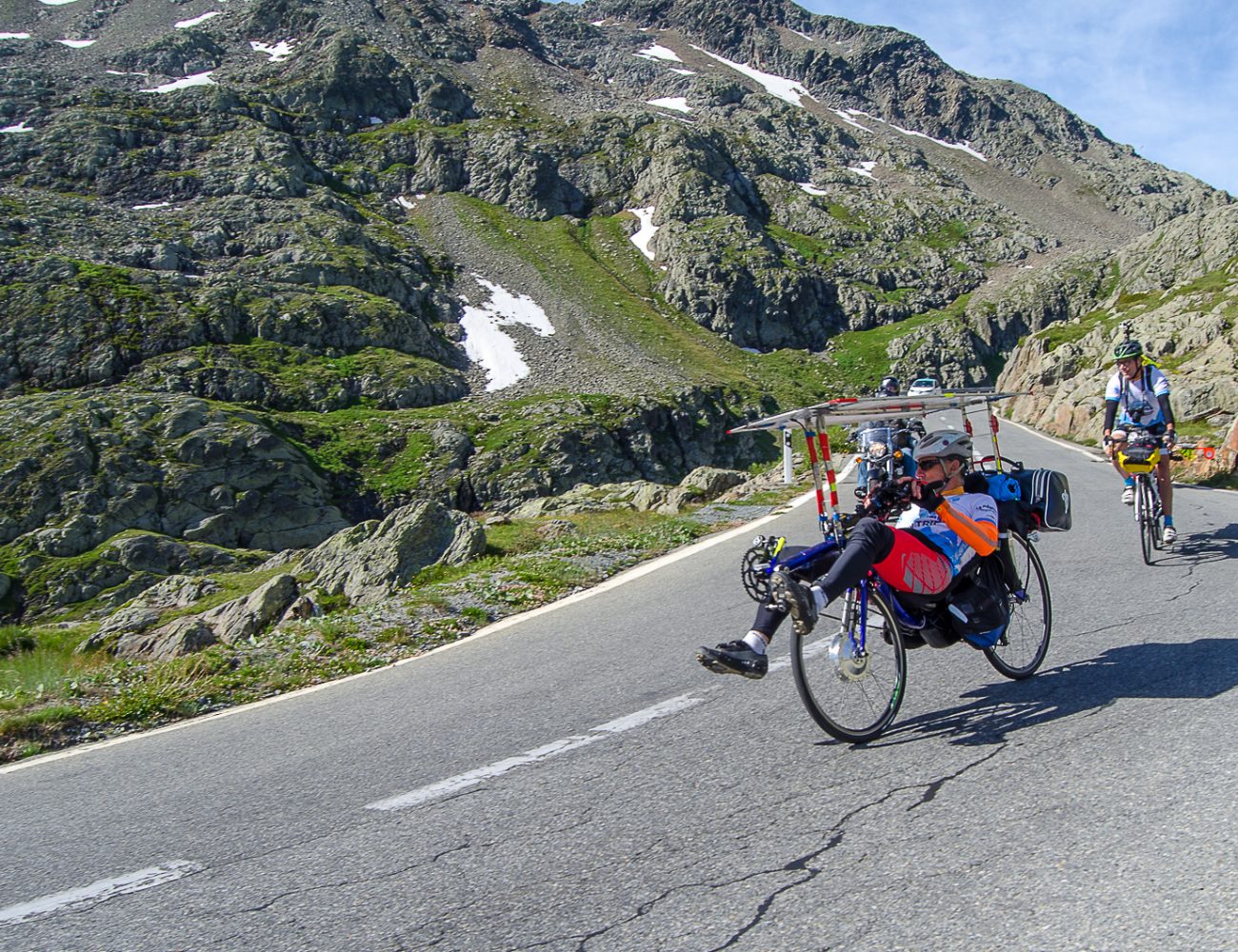 On the Col de l'Iseran, 2770 m. with a strong cold wind from the north making it even tougher...